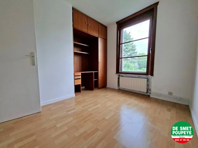 * 2 slaapkamers (laminaatparket) : 2 pers. en 1 pers. met bureau en ingemaakte kast