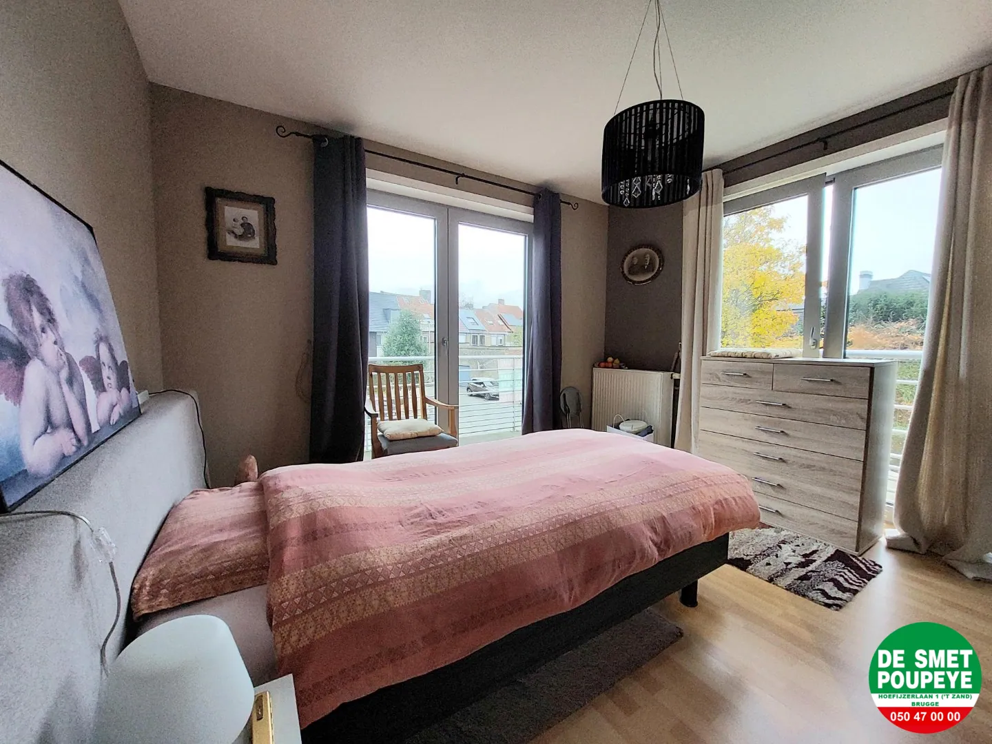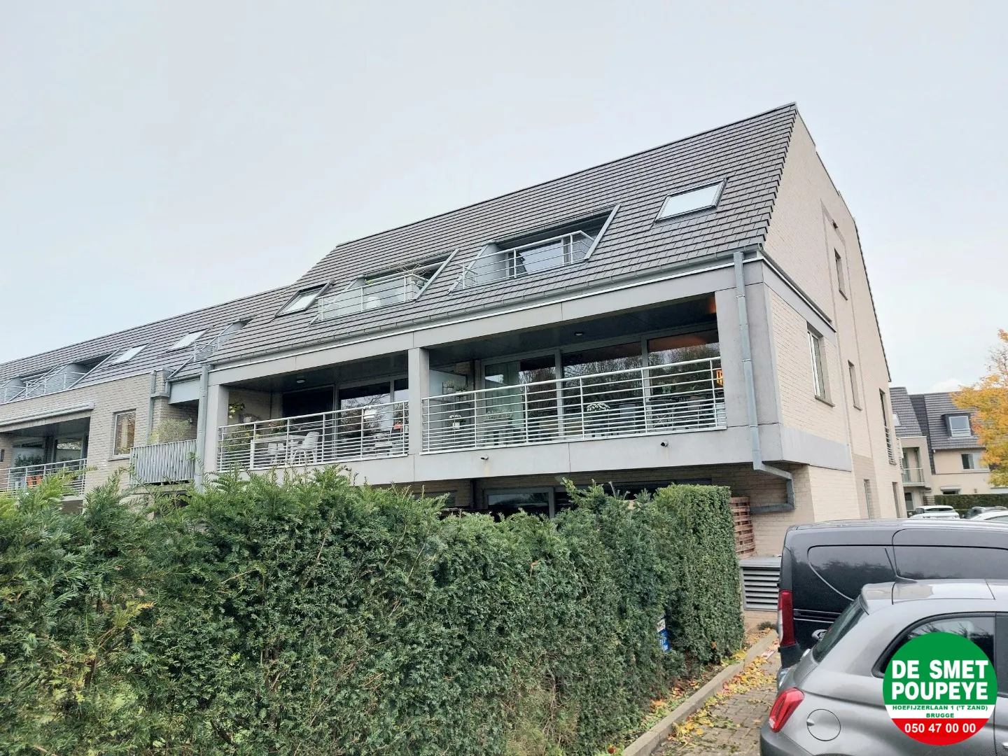 Recent appartement van 99m² op de eerste verdieping met een zonnige living met open ingerichte keuken met toestellen, 2 slaapkamers, 2 terrassen, algemene fietsenberging en mogelijkheid tot het huren van een garagebox aan € 75/maand.
