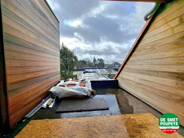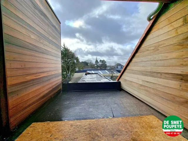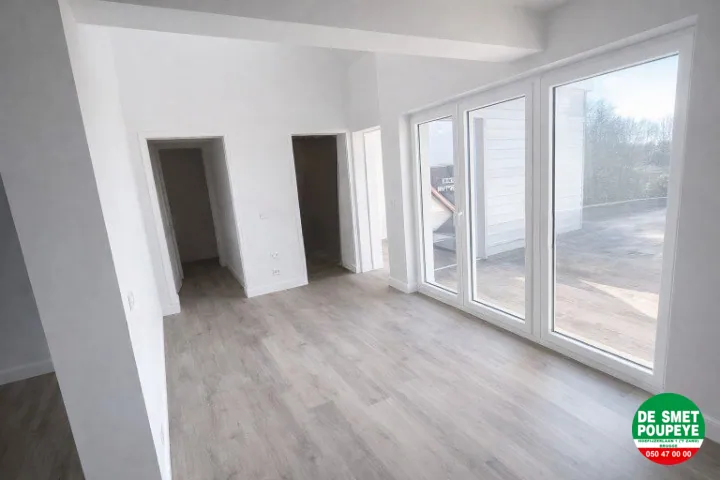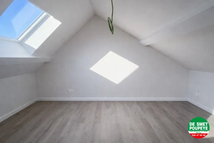 Dit dakappartement van 132m² is gelegen in het centrum van Sint-Kruis in de residentie "Les Lunettes" en is gerenoveerd in 2025-26 en afgewerkt met oog voor detail. Er zijn 3 slaapkamers en een dakterras. Vanuit de living kan je genieten van het park rechtover het appartement. Verder is er ook nog een algemene fietsenberging. Energielabel A !!!