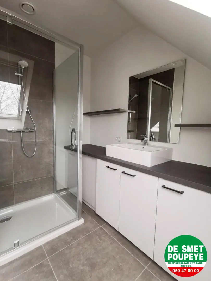 Zeer energiezuinig (label A) appartement met 2 slaapkamers, 2 badkamers, terrasje, fietsenberging en autostaanplaats.