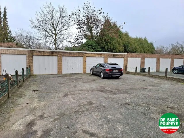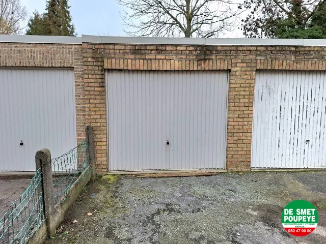 Deze garage is gelegen net buiten het centrum van Brugge en heeft veel manoeuvreerruimte ervoor.