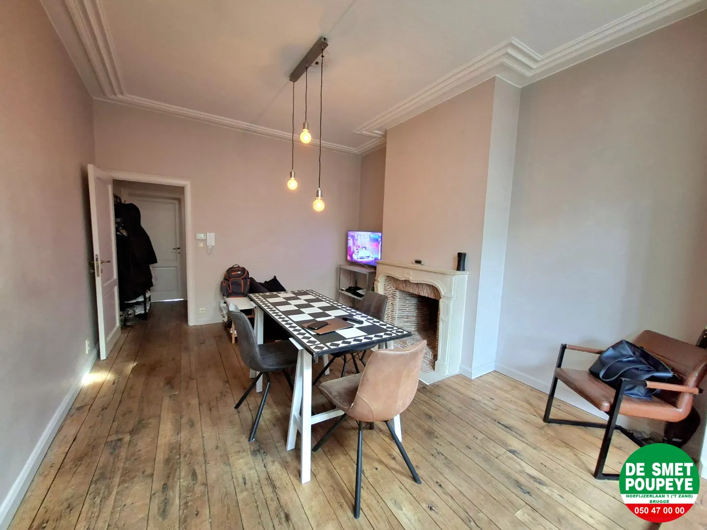 - eetplaats (massief parket) met witstenen sier open haard: 4,5m x4m