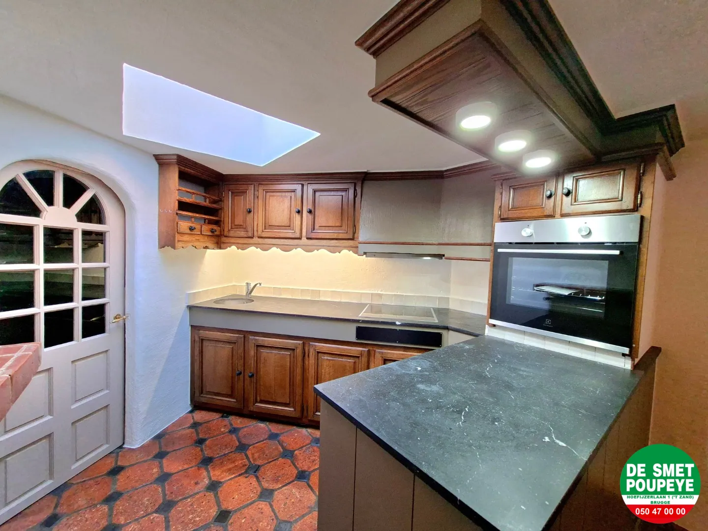 - open ingerichte keuken : dampkap, keramische kookplaat, oven en frigo