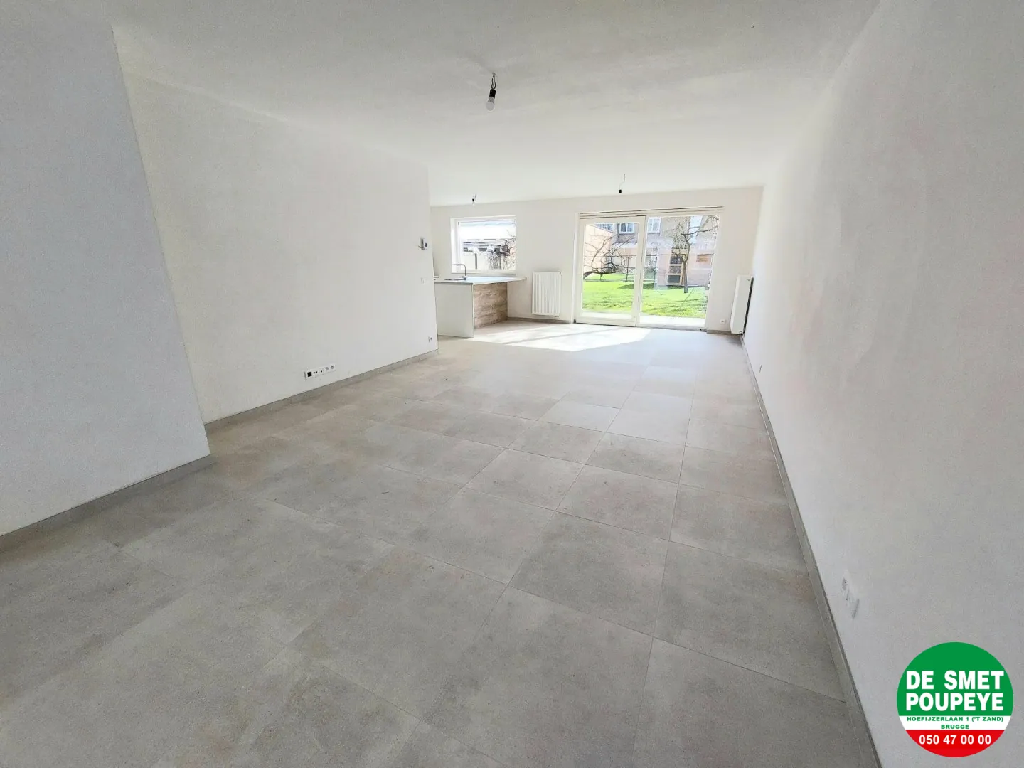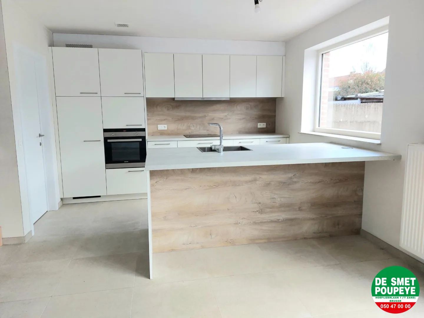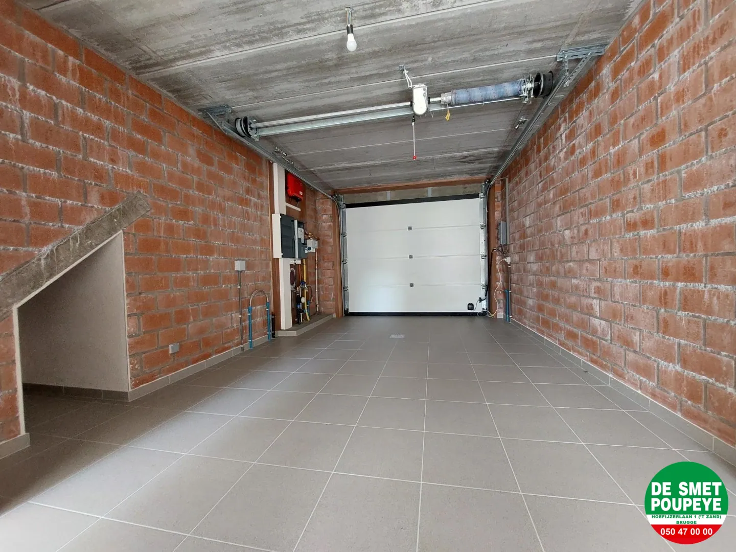 gelijkvloers : inkom met toilet en vestiaire / living (tegels) / open ing. keuken (dampkap, inductie kookplaat, oven, frigo en vaatwasmachine) / garage (automatische sectionale poort) met wasplaats / terras / tuin met tuinberging