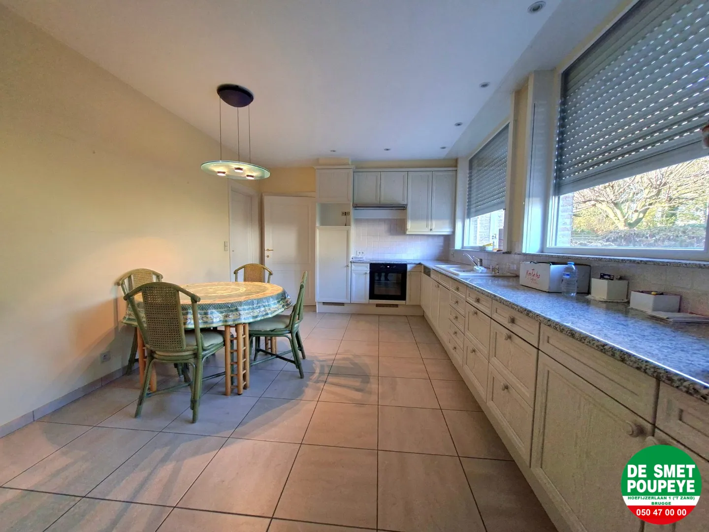 - ingerichte keuken : dampkap, keramische kookplaat, oven, frigo, vaatwasmachine en eethoek