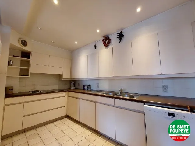 inkom met toilet / living (laminaatparket) : 34m² met zicht op het Prinsenhof / ing. keuken (dampkap, keramische kookplaat, oven, frigo en vaatwasmachine) / berging / badkamer (2 lavabo's met meubel, inloopdouche en aansluiting voor wasmachine) / slaapkamer 1 (laminaatparket) : grote 2 pers. / slaapkamer 2 (laminaatparket) : 2 pers.