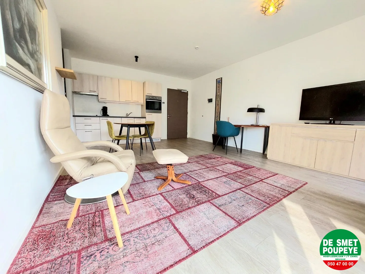 Gezellige leefruimte met open ingerichte keuken, wasplaats, 1 slaapkamer en badkamer met inloopdouche. Verder is er een zonnig terras.