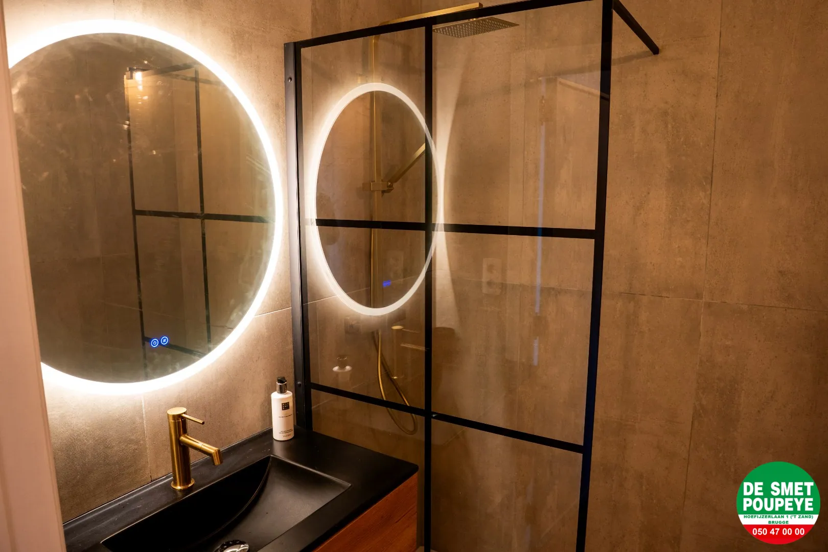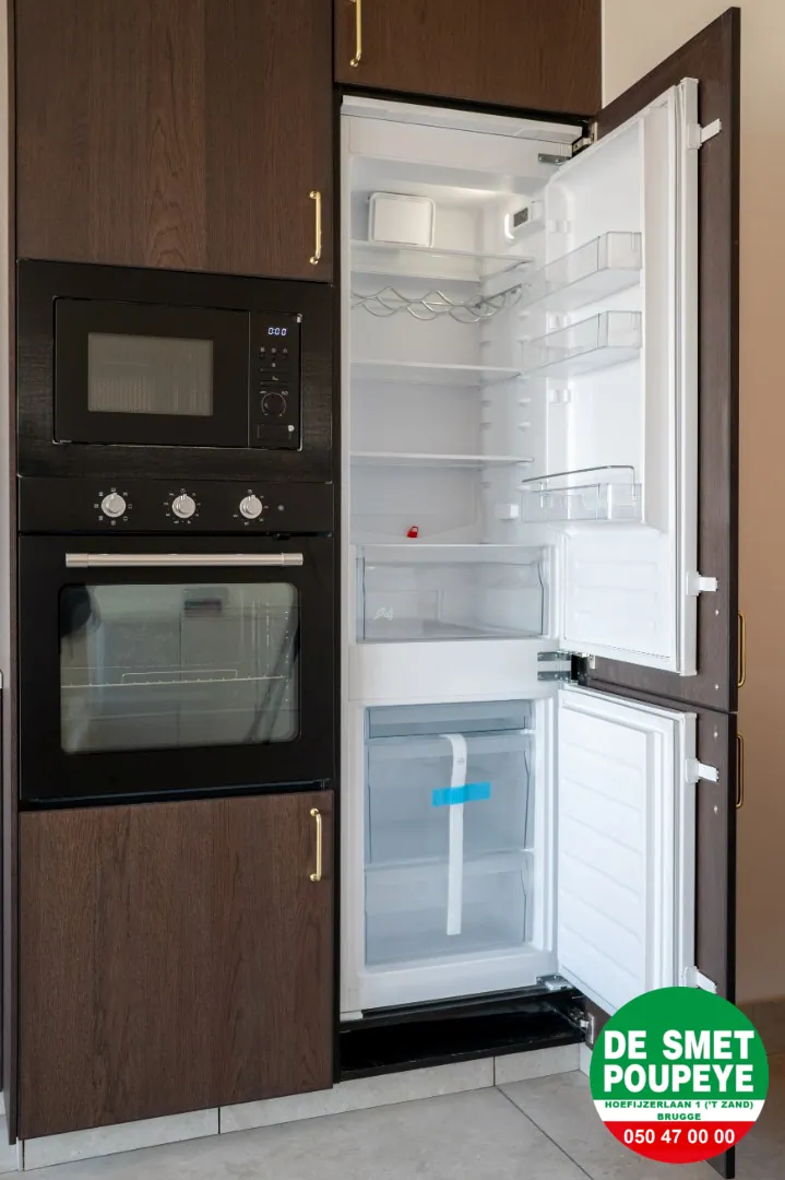 - open ingerichte keuken : dampkap, keramische kookplaat, oven, mircrogolfoven, frigo, diepvries en vaatwasmachine