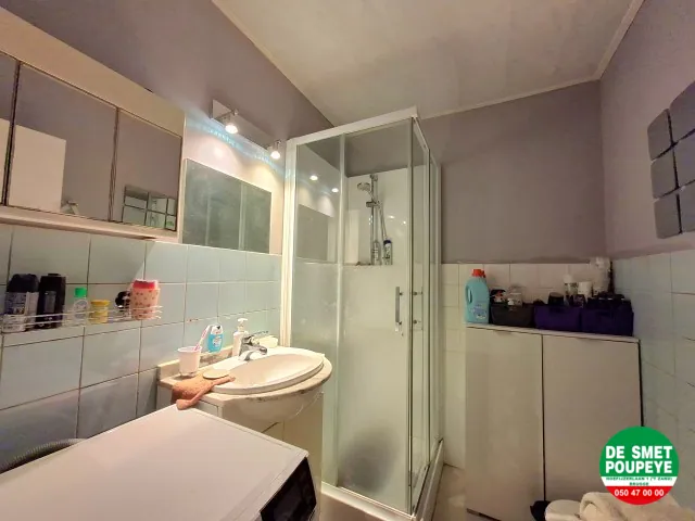 - badkamer : lavabo, nieuwe douche (2024) en aansluiting voor wasmachine