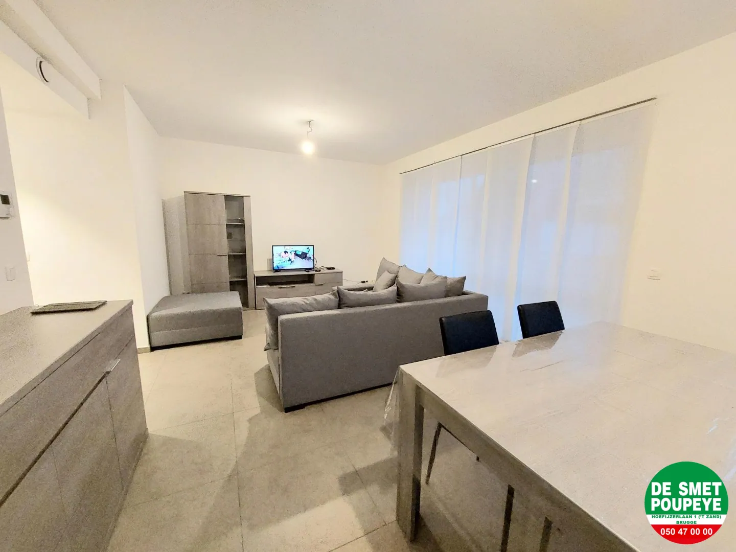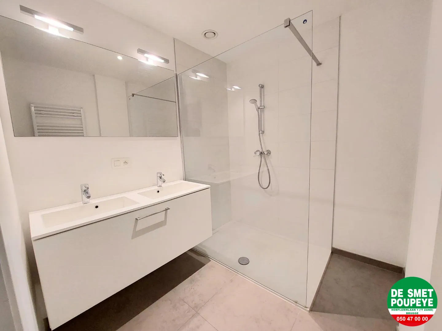 Dit appartement, gebouwd in 2017 is zeer centraal gelegen en heeft een zonnige living met open ingerichte keuken, badkamer met inloopdouche, wasplaats en 2 slaapkamers.