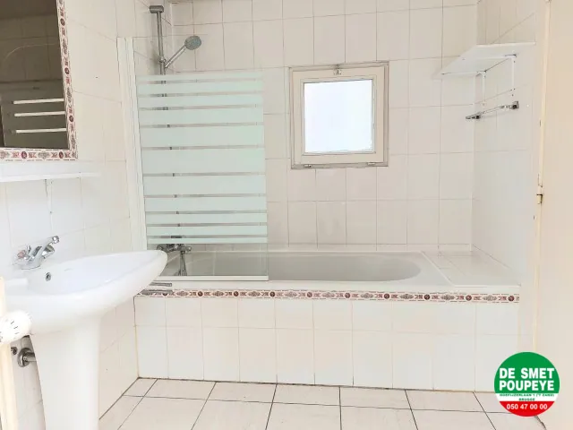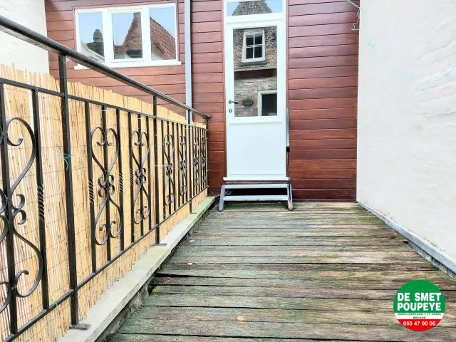 Op de verdieping is er een groot duplex-appartement met ruime living, ingerichte keuken met toestellen, 1 slaapkamer, berging/wasplaats, badkamer met ligbad/douche, 2 bureaus/hobbykamer en 2 terrassen waarvan 1 zeer ruim. Supermarkt, bakkerij, slagerij,... alles in de buurt. (Wche, Vg, Gvg, Gmo, Gvkr)