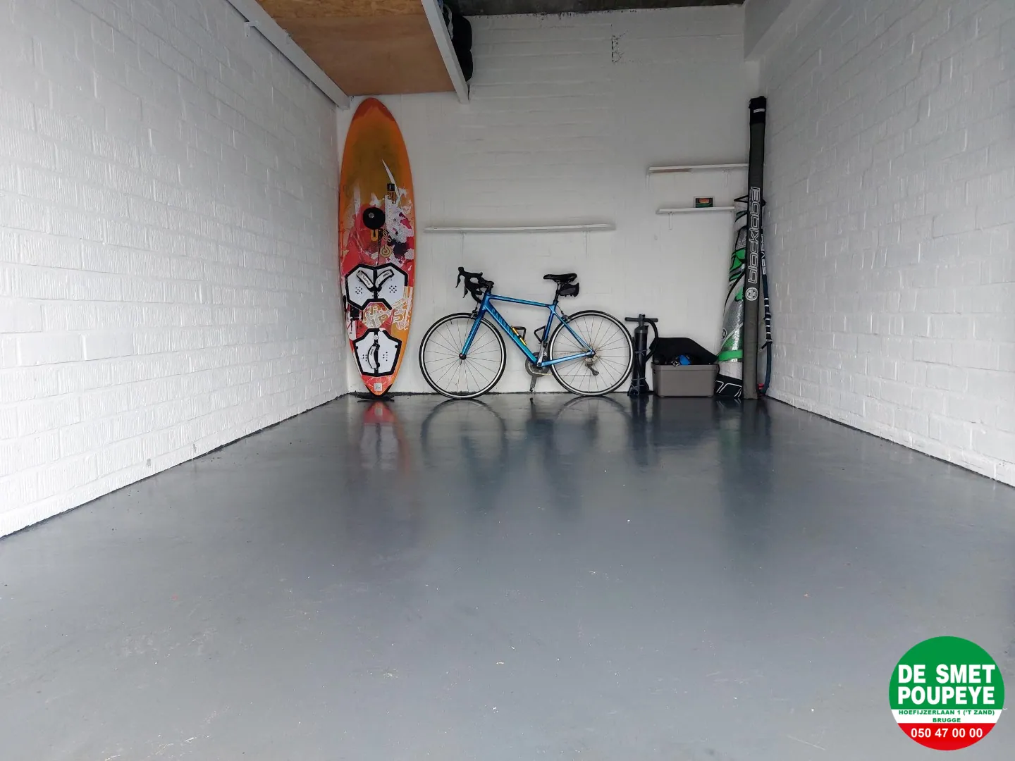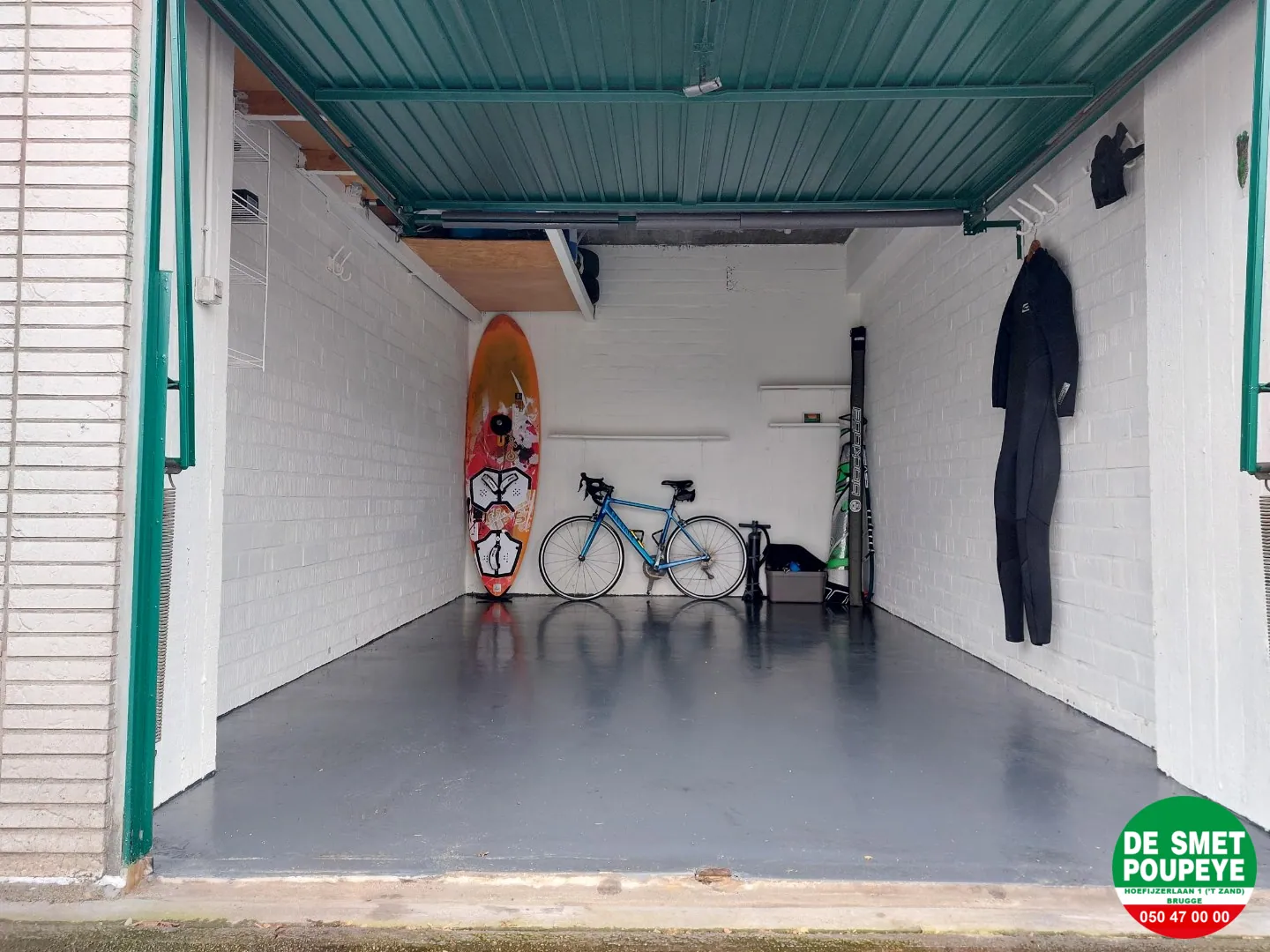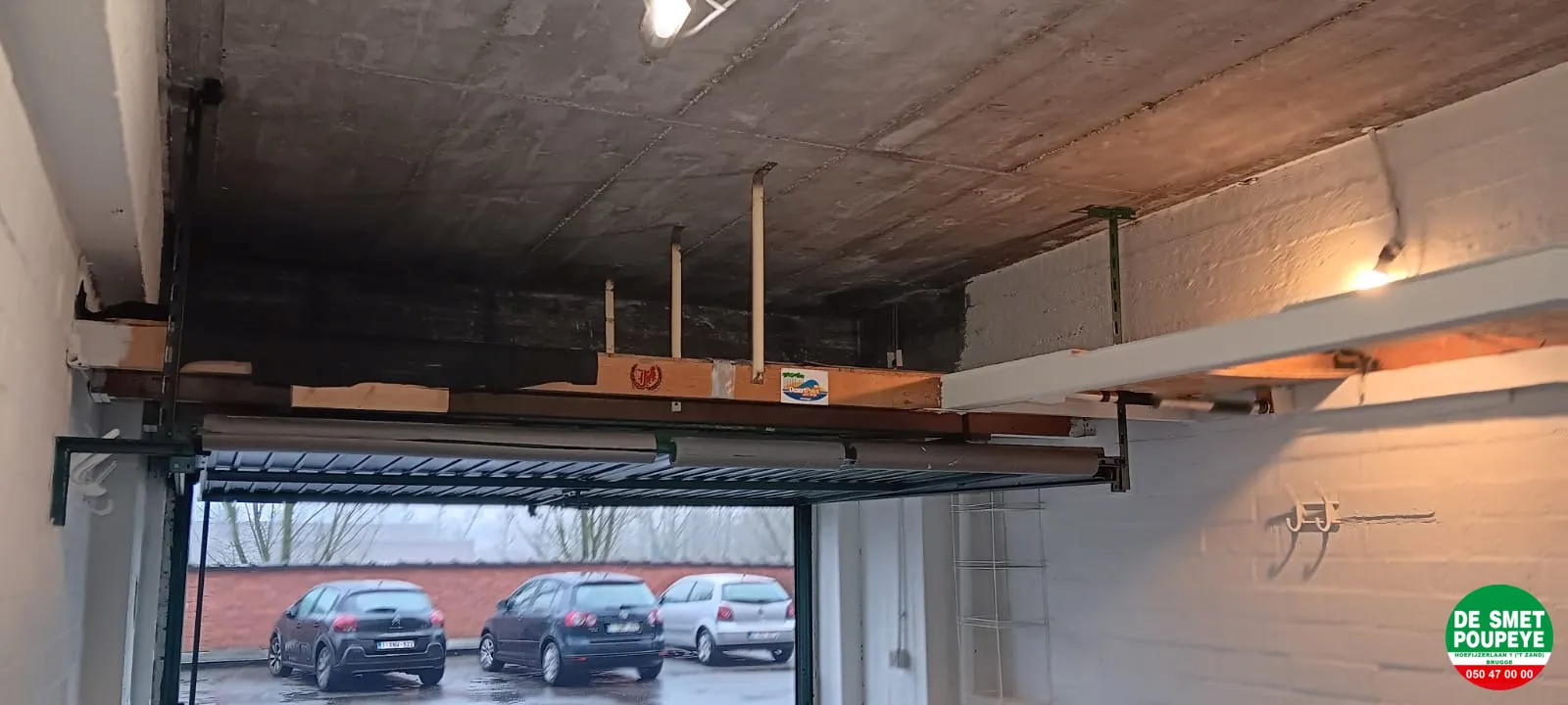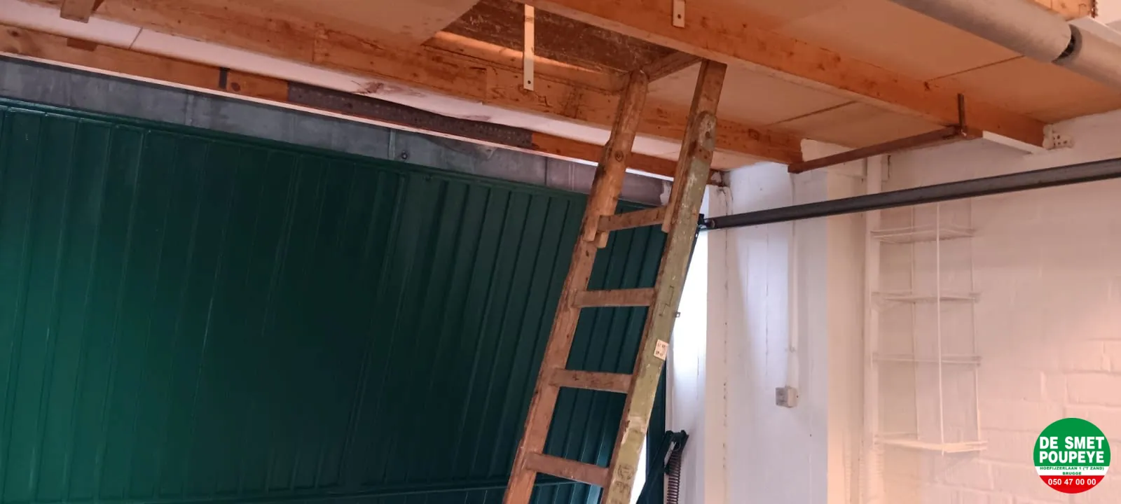 Voor de poort is er voldoende plaats voor het vlot binnen rijden. Er ook nog een zoldertje in de garage.