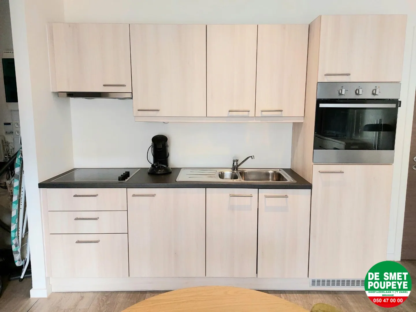 Gezellige leefruimte met open ingerichte keuken, wasplaats, 1 slaapkamer en badkamer met inloopdouche. Verder is er een zonnig terras.