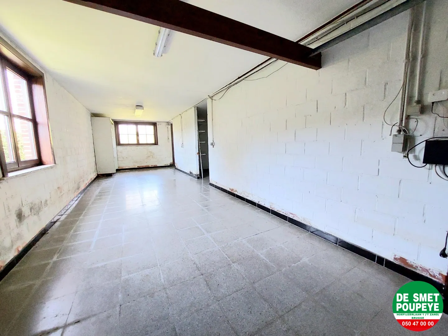 inkom met toilet / ruime living van 37m² met witstenen schouw / ruime ing. keuken : dampkap, electrische kookplaat, oven en eethoeke / wasplaats / garages voor 2 wagens (2.9 x 10m20)