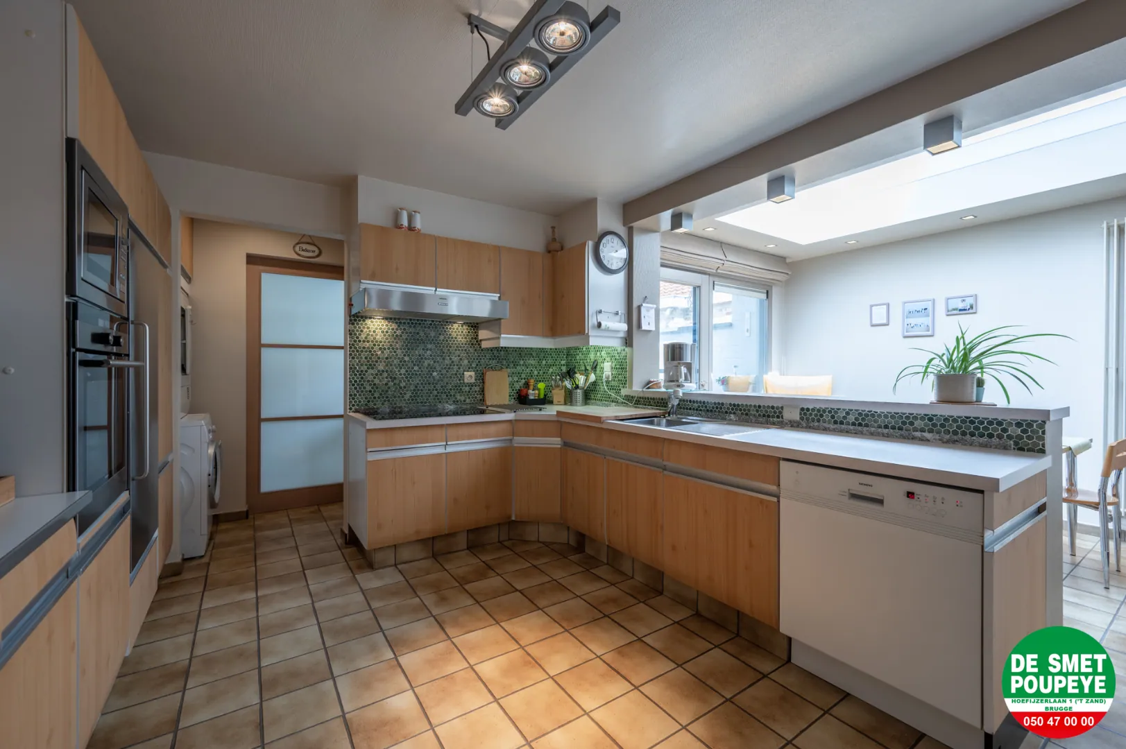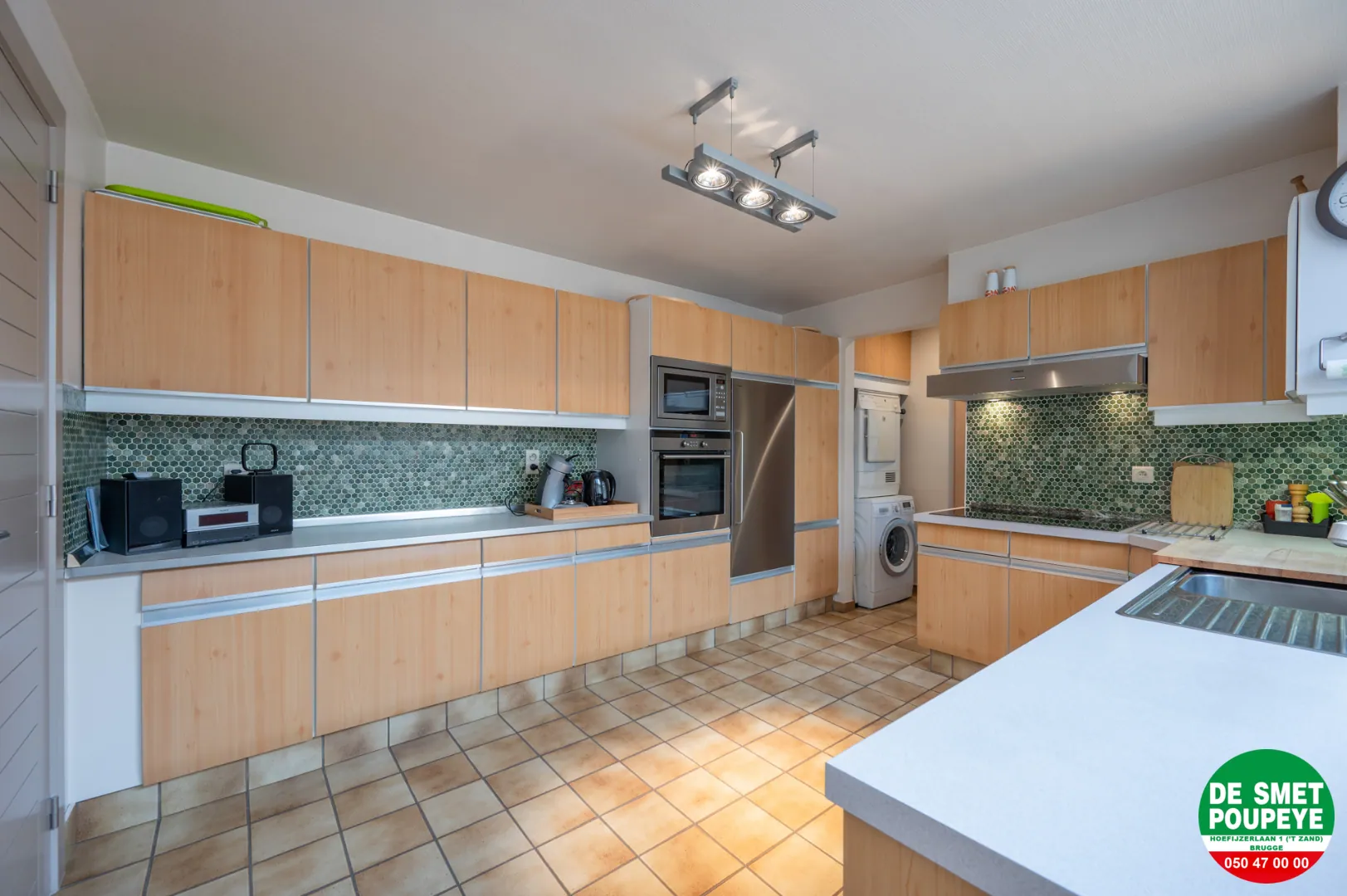 ruime ingerichte keuken : dampkap, inductie kookplaat, oven, microgolf, frigo, vaatwasmachine en eetplaats