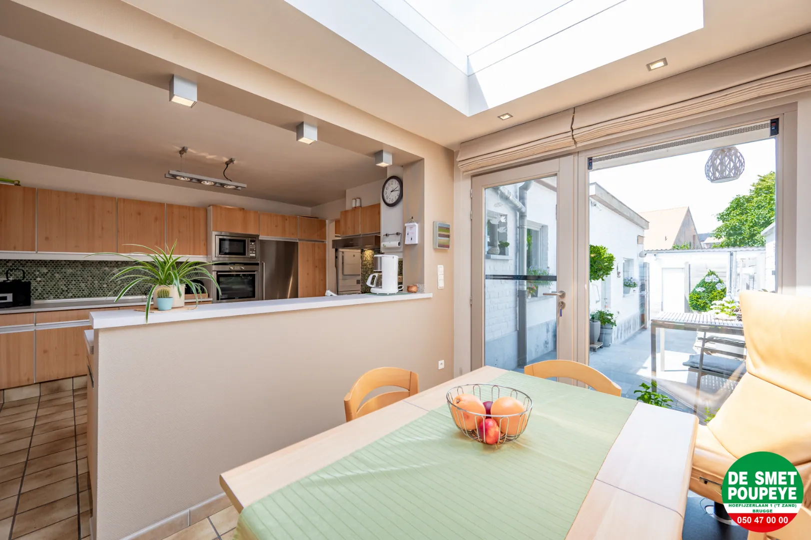 De ruime living met aanpalende keuken met een aansluitende binnenplaats/terras. Ruime badkamer, 4 slaapkamers, zolderkamer, ruime garage en fietsenpoortje.