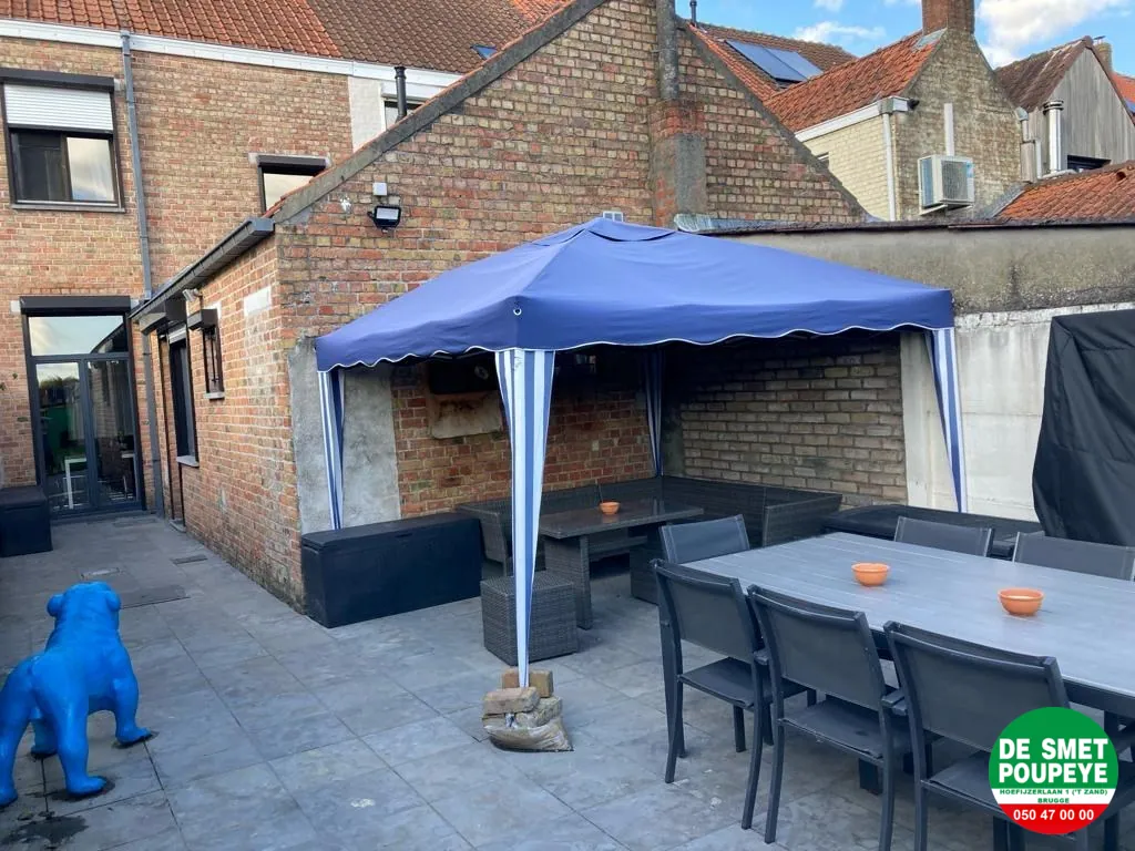 Deze woning is gelegen op fietsafstand van de Brugse binnenstad en het station en heeft een ruime inkom met ingemaakte kasten, aangename living, ingerichte keuken, recent vernieuwde badkamer met inloopdouche, 3 ruime slaapkamers, terras en tuin.