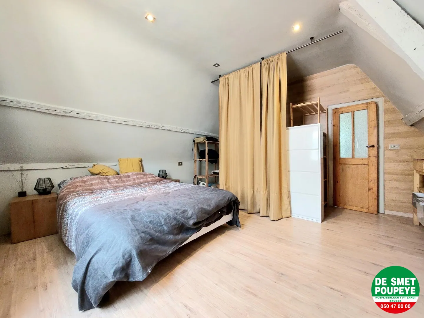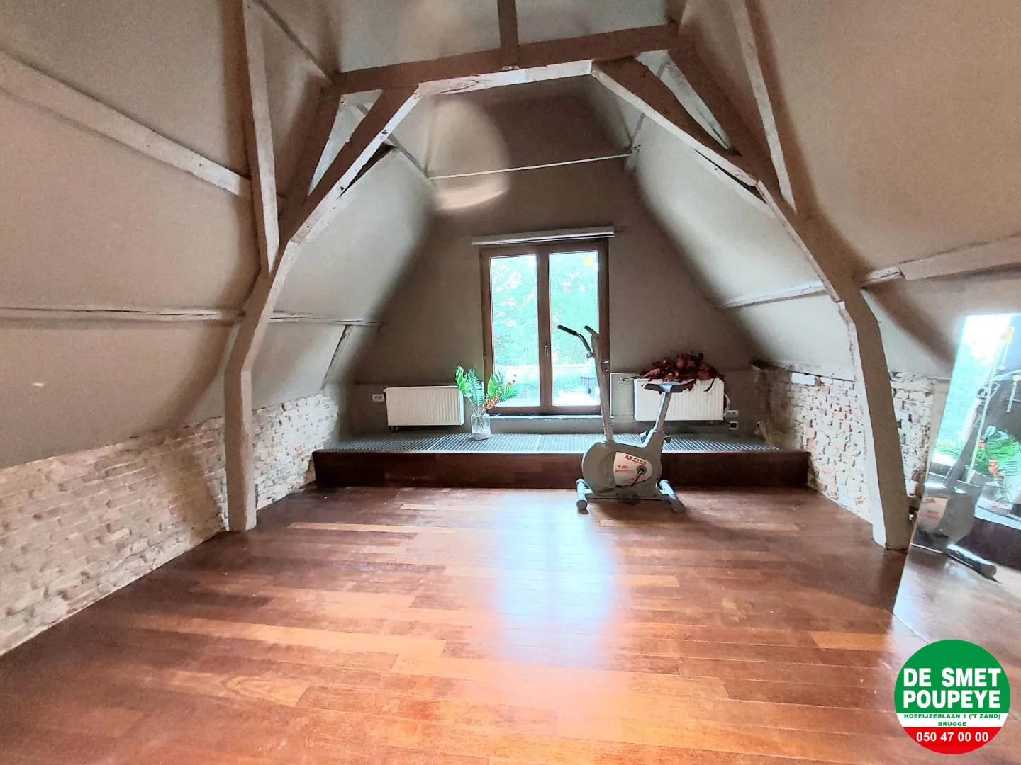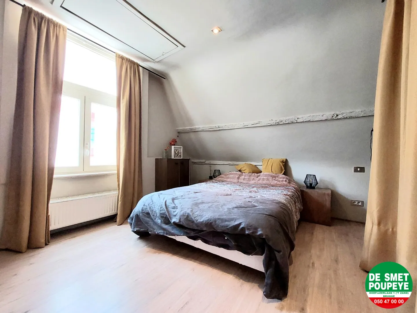 1e verdieping : slaapkamer 2 (laminaatparket): 4m x 4m met zichtbare balkenstructuur / bureau of extra zithoek